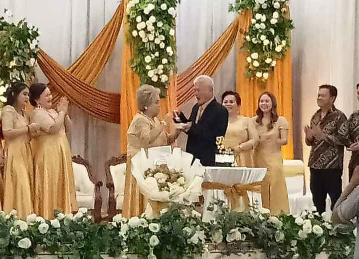 MANADO, ciptanews.id- Ibadah syukur perayaan hari ulang tahun perkawinan emas 50 tahun orang tua dari keluarga Lapasian Tarumingkeng berlangsung hikmat dan suka cita, Senin (15/01/2024).