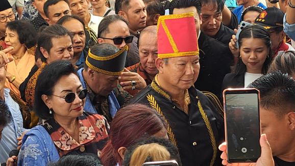 MINAHASA, ciptanews.id – Tiba di Langowan Grand Hotel Minahasa, Minggu (02/06/2024) Hashim Djojohadikusumo dan Rombongan disambut dengan tarian Cakalele oleh sejumlah tuama Minahasa. Dimana tarian Cakalele diketahui merupakan tarian perang masyarakat adat Minahasa.