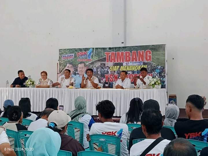 SANGIHE, ciptanews.id – Komunitas masyarakat tambang yang tergabung dalam militan Irvan Mamadoa Ogelang (IM0) melaksanakan dialog dengan calon Gubernur Sulawesi Utara Mayjen TNI (Purn) Yulius Selvanus Lumbaa Komaling di Graha Imanuel Tahuna, Jumat (08/11/2024).