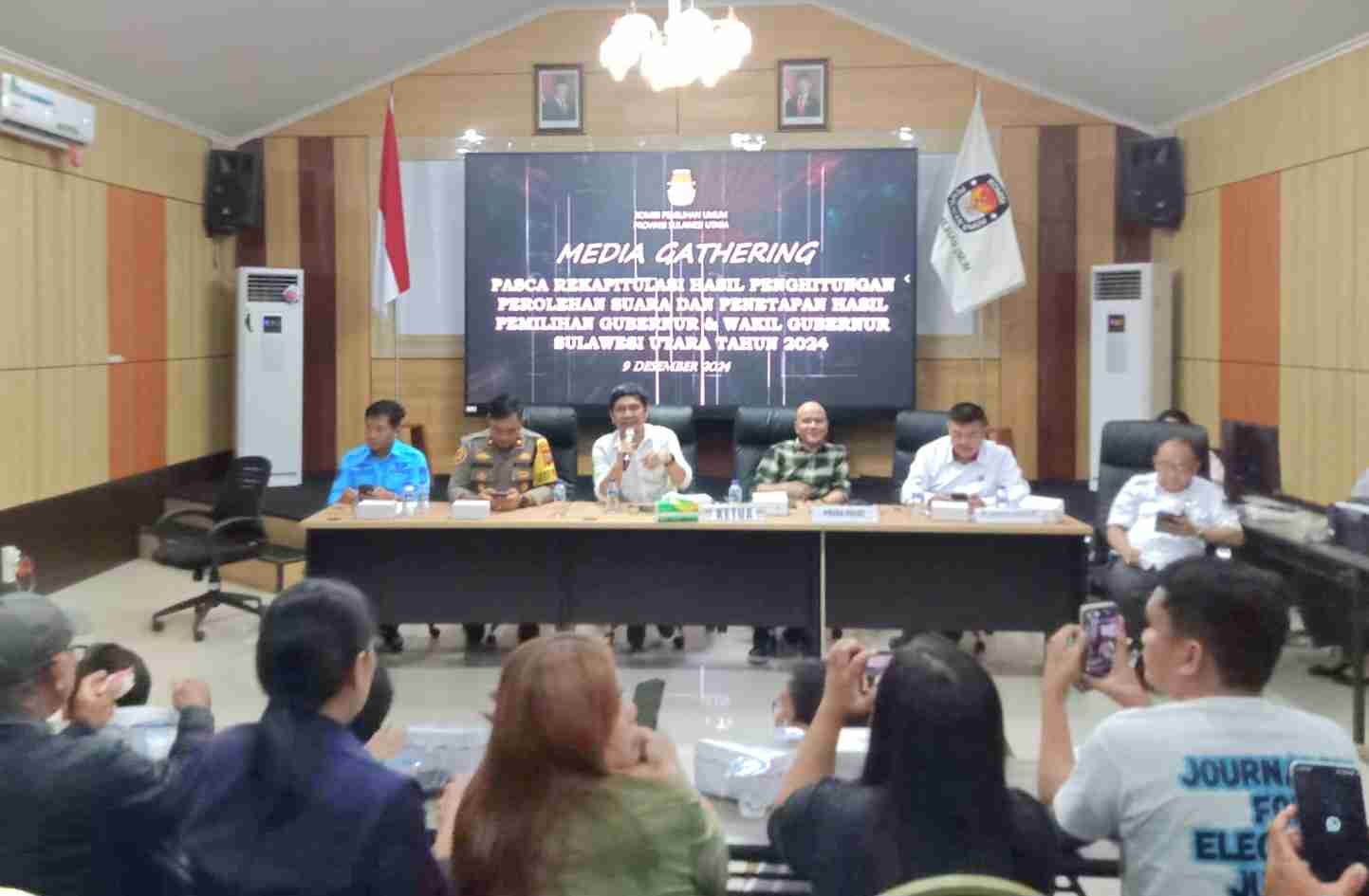 Suasana media gathering pasca rekapitulasi penghitungan suara paslon Gub dan Wakil Gubernur oleh KPU Sulut (FoRa/ciptanews.id)