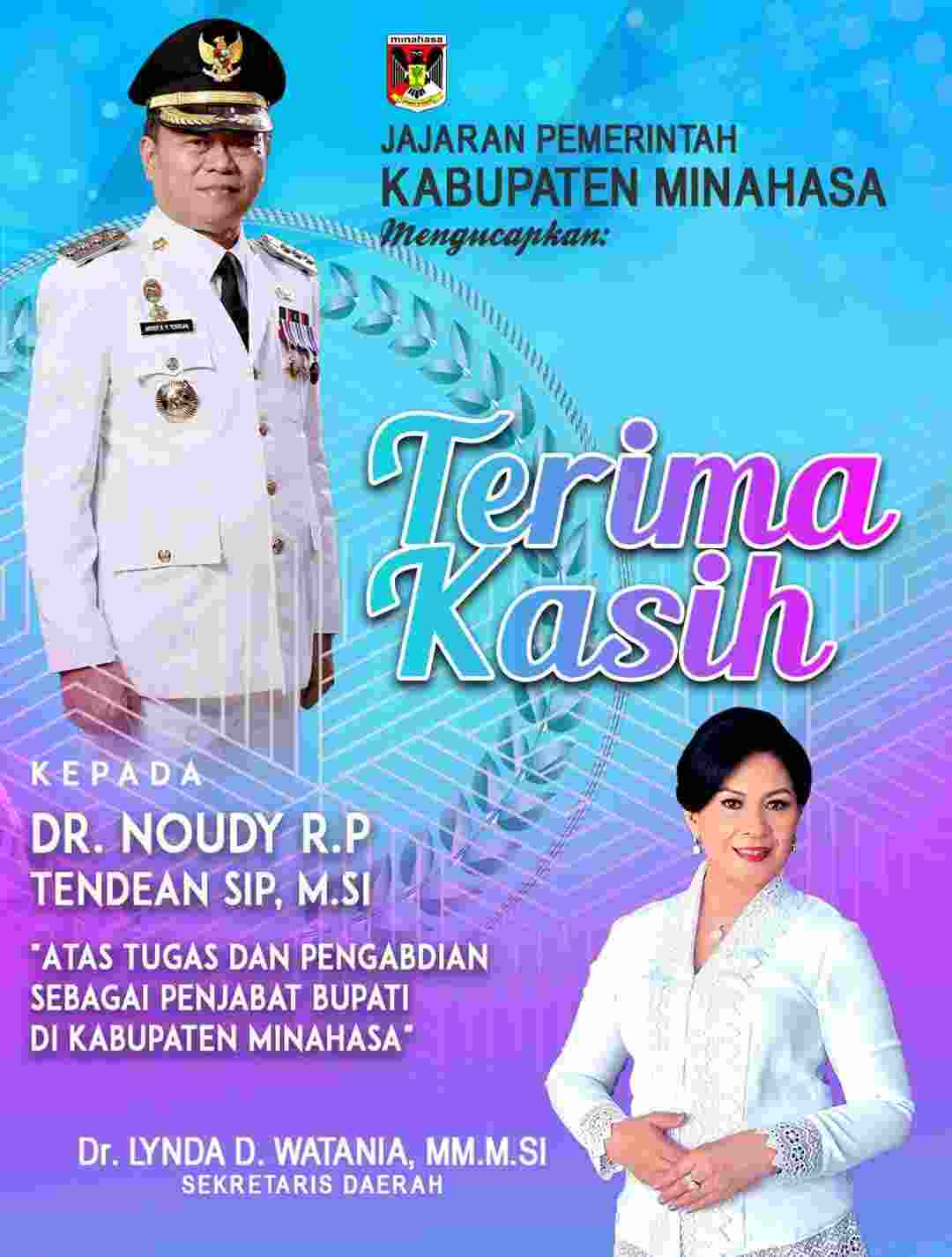 Noudy Tendean resmi mengakhiri masa jabatannya dan menyerahkan kepemimpinan kepada Bupati terpilih Robby Dondokambey dan Wakil Bupati Vanda Sarundajang, yang telah dilantik oleh Presiden RI Prabowo Subianto.