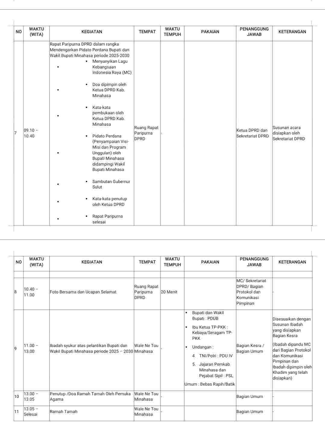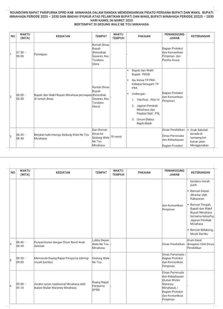 Adapun Roundown kegiatan besok 6 Maret 2025 di Wale ne Tou Minahasa sebagai berikut: