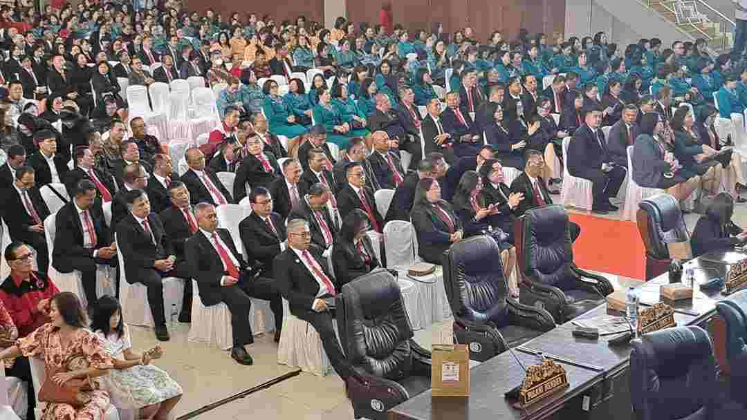 MINAHASA, ciptanews.id – Pemerintah Kabupaten Minahasa bersama Dewan Perwakilan Rakyat Daerah (DPRD) Minahasa menggelar Rapat Paripurna Penyampaian Pidato Perdana Bupati dan Wakil Bupati Minahasa periode 2025-2030 di Gedung Wale Ne Tou Minahasa, Kamis (06/03/2025) sekitar pukul 10.00 wita.