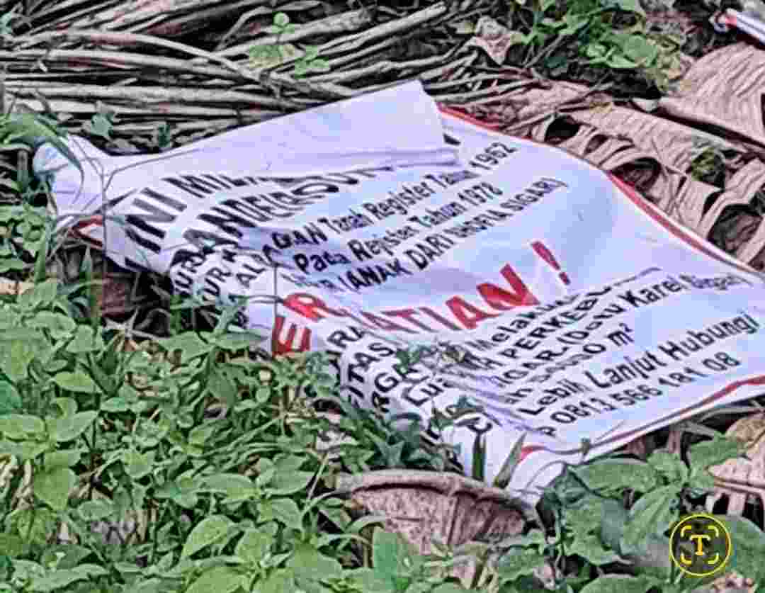 Dimana baliho yang berisi informasi kepemilikan yang mereka pasang ternyata telah tergeletak ditanah yang diduga dicabut dengan paksa oleh oknum tak bertanggungjawab.
