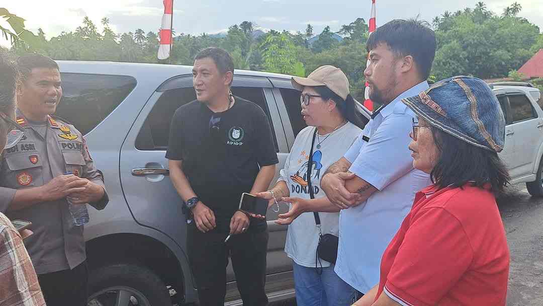 Kapolsek Langowan Selatan Iptu Edi Asri, keluarga keturunan Pandeiroot Alow serta Hukum Tua Desa Rumbia Oliver Dharmawan saat membahas masalah tanah di Desa Rumbia (span/ciptanews.id)