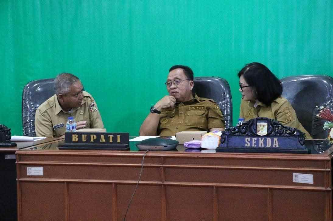 Rapat tersebut berlangsung di Ruang Command Center Kantor Bupati Minahasa dan turut dihadiri jajaran perangkat daerah yang terkait dalam pengendalian inflasi serta program pembangunan perumahan.