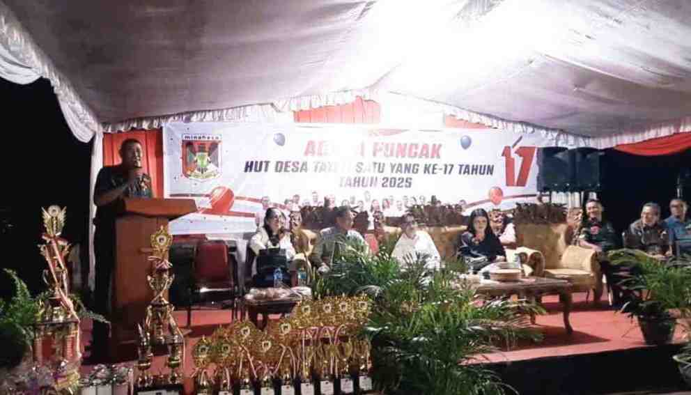 Camat Mandolang, Reyly Yurike Pinasang, SE, yang hadir mewakili Pemerintah Kabupaten Minahasa, dalam sambutannya menyampaikan ucapan selamat ulang tahun kepada seluruh masyarakat Desa Tateli Satu. Ia menegaskan bahwa usia 17 tahun merupakan momentum penting yang melambangkan semangat baru dalam membangun desa.