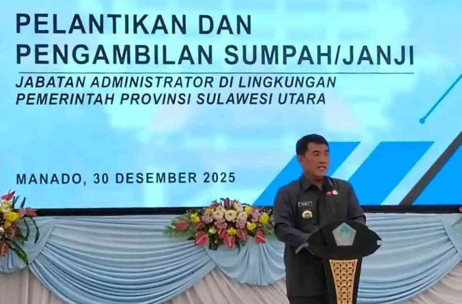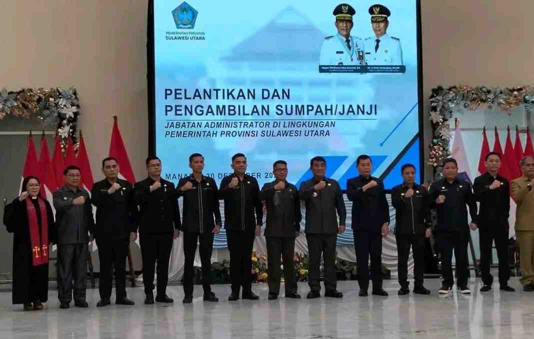 MANADO, Cipta News — Pemerintah Provinsi Sulawesi Utara kembali melakukan penyegaran birokrasi menjelang penutupan tahun 2025. Gubernur Sulut, Mayjen TNI (Purn) Yulius Selvanus melantik dan mengambil sumpah/janji sejumlah pejabat administrator di lingkungan Pemprov Sulut, Selasa (30/12/2025), bertempat di Wisma Negara Bumi Beringin, Manado.