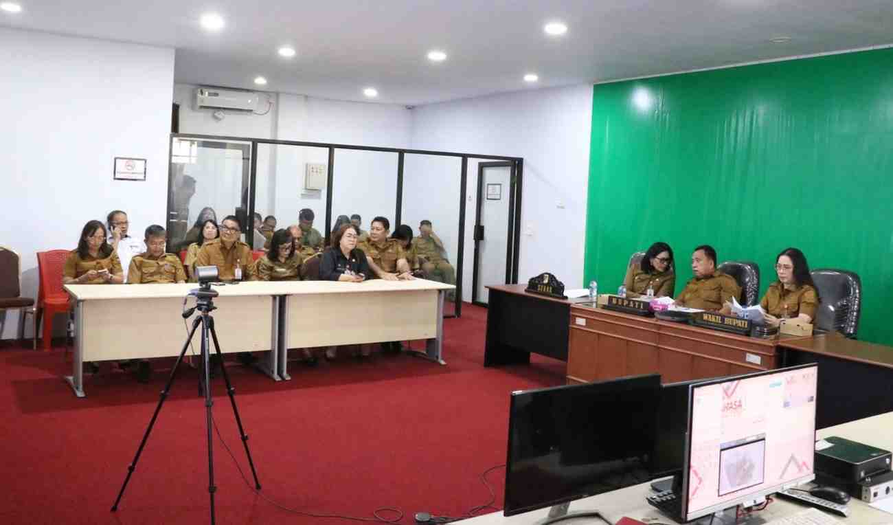 Rakor ini dipimpin langsung oleh Menteri Dalam Negeri, Jenderal Pol. (Purn.) Prof. Drs. H. Muhammad Tito Karnavian, Ph.D. melalui Zoom Meeting dari Ruang Command Center Kantor Bupati Minahasa.