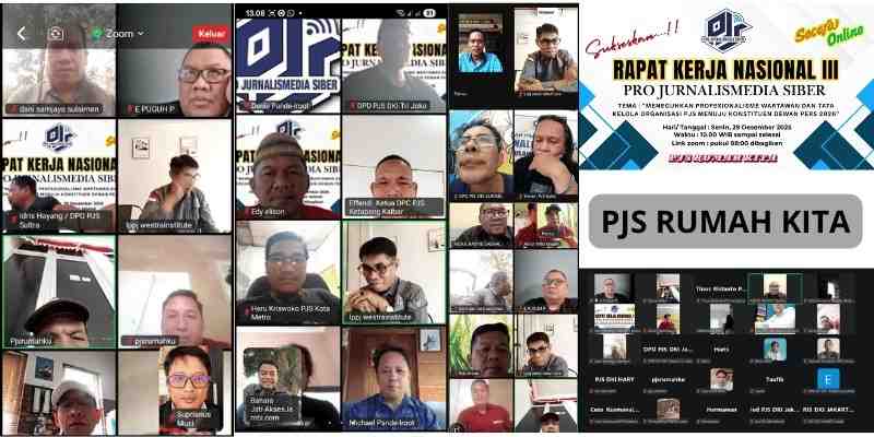 Rakernas yang berlangsung pada Senin (29/12/2025) ini dilaksanakan secara hybrid, mengombinasikan kehadiran langsung dan partisipasi daring dari pengurus PJS di berbagai daerah. Kegiatan dibuka secara resmi oleh Ketua Umum DPP PJS, Mahmud Marhaba, dan dimoderatori Sekretaris Jenderal DPP PJS, Abdul Rasyid Zainal.