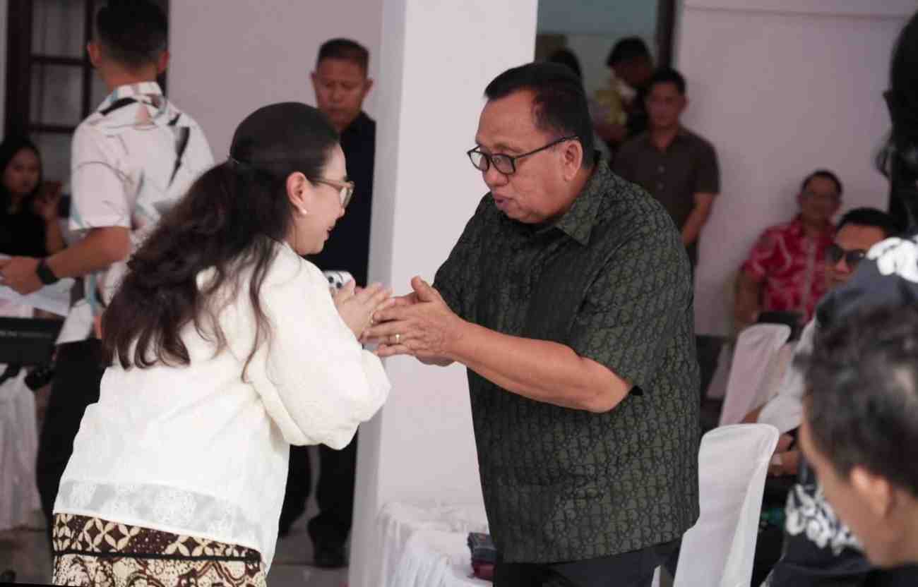 Wakil Bupati Minahasa, Vanda Sarundajang memberikan selamat HUT ke 68 Tahun kepada Bupati Minahasa, Robby Dondokambey (ist)