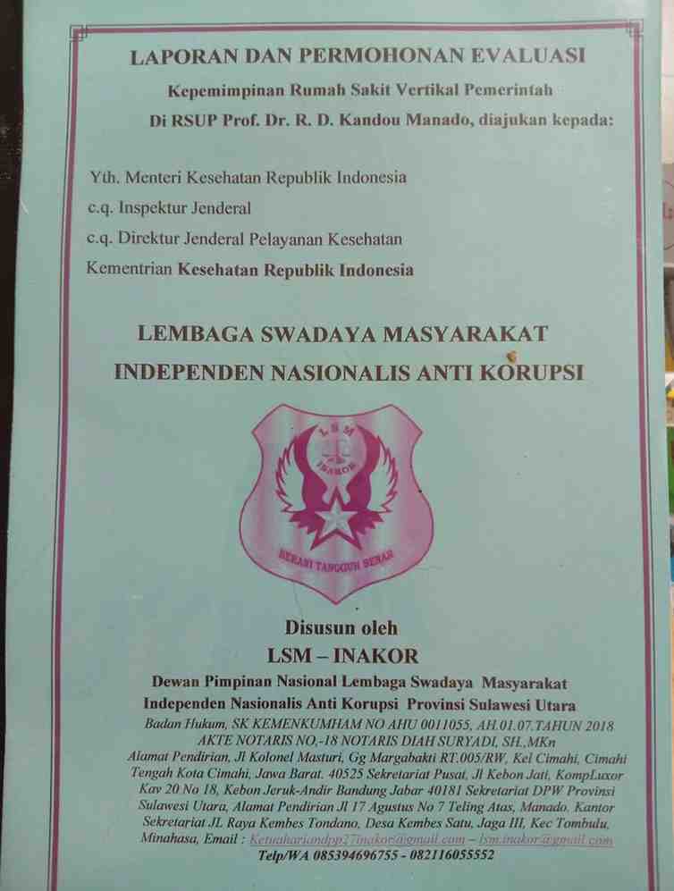 Dalam siaran persnya, Ketua LSM INAKOR Sulut, Rolly Wenas, mengatakan bahwa langkah tersebut merupakan bagian dari partisipasi masyarakat sipil dalam mendorong penguatan tata kelola Rumah Sakit vertikal milik pemerintah pusat agar berjalan secara profesional, transparan, dan akuntabel.