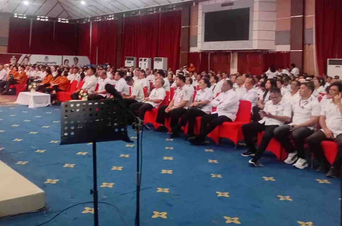 Wali Kota Manado, Andrei Angouw, menghadiri Sosialisasi Kegiatan Pendataan Ground Check (GC) Penerimaan Bantuan Iuran (PBI) sekaligus Bimbingan Teknis (Bimtek) bagi Ketua Lingkungan se-Kota Manado (ist)